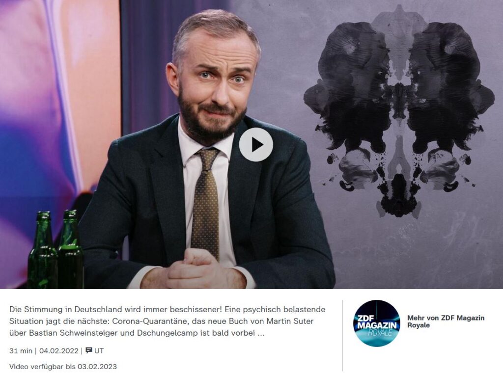 Alle KJP-Informationen / Alle Berufspolitik / Versorgungslage 4. Februar 2022 Jan Böhmermann: ZDF Magazin Royale Nach zwei Jahren Pandemie geht nur noch Humor
